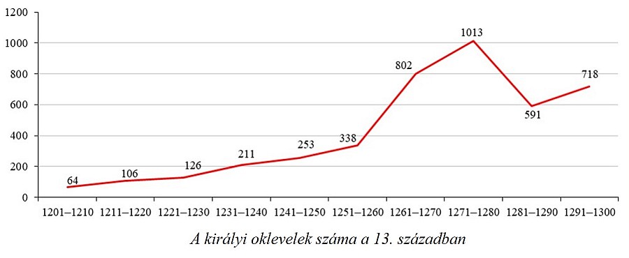Az oklevelek száma időben előre haladva jelentős gyarapodást mutat: az Árpád-kor 1301-ig tartó időszakából 10.000 oklevél őrződött meg, az ezt követő mindössze három évtizedből pedig újabb 10.000. (Az oklevelek jelentőségének növekedését jól szemlélteti a 13. századi királyi oklevelek számának alakulása.) A magyar történelem újabb nagy fordulópontja, az 1526-ban történt mohácsi csatavesztés előtti időszakból pedig már az oklevelek százezres nagyságrendben állnak rendelkezésre. Az ómagyar kor e későbbi időszakából tehát már szinte felbecsülhetetlen és egyelőre kimeríthetetlennek tűnő gazdagságú forrásanyaggal számolhatunk.