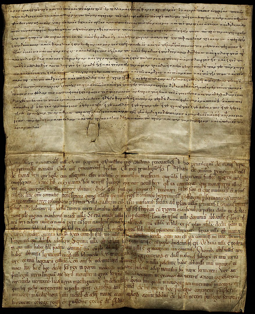 A hiteles másolt oklevelek sajátos, egyedi formáját képviseli a Veszprémvölgyi apácák adománylevele (VA), amelynek eredetijét egyesek szerint 1001 előtt, mások szerint 1018 körül vagy után írták görög nyelven, ami erős bizánci hatásra utal a Kárpát-medencében való letelepedést követő időszakban. Az oklevél abban a formában maradt ránk, ahogyan azt 1109-ben Könyves Kálmán király az apácáknak adományozott birtokokat megerősítő oklevelében leíratta. Ebben egymást követően szerepel az István király nevében kiállított görög nyelvű oklevél másolata, valamint ennek a megújítás során létrehozott latin nyelvű fordítása.