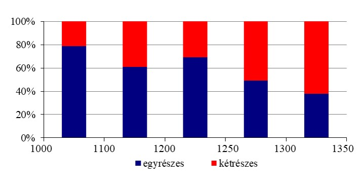 A magyar írásbeliség első három és fél évszázada alatt, az úgynevezett korai ómagyar korban a kétrészes nevek arányának határozott növekedése mutatkozik meg. A 11. században még csak a nevek 20%-a volt kétrészes, a következő két évszázadban már 40% körül van az arányuk, a 14. század első felében (a korábbiakkal csaknem azonos számú adattal számolva) pedig meghaladja a 60%-ot is. Ezt a változást jól szemlélteti a diagram.