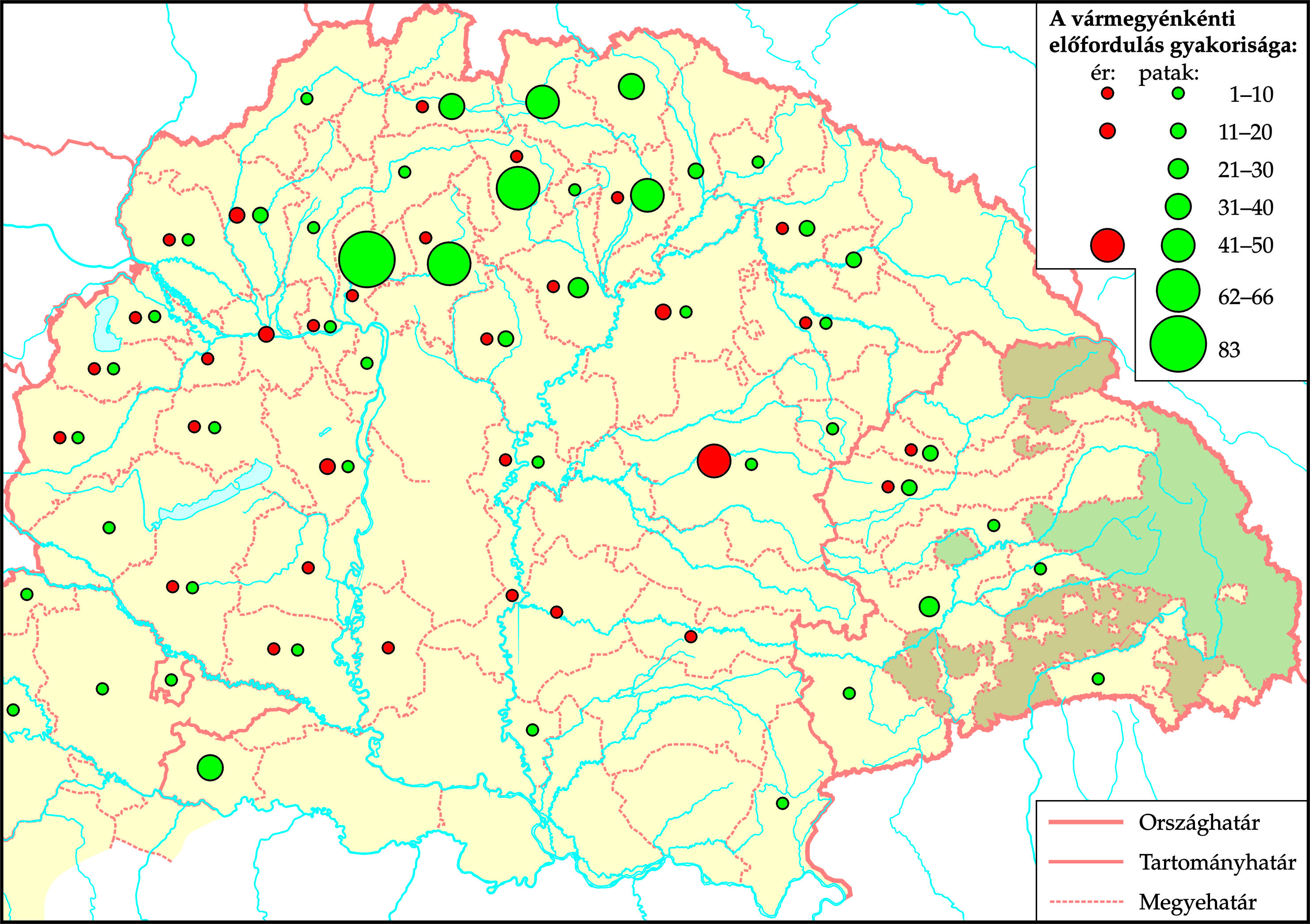 Az egész magyar nyelvterületen néhány évszázad alatt általánossá vált viszont a patak vízrajzi köznév használata, amely a vízrajzi köznévi utótagot tartalmazó Árpád-kori nevek mintegy két harmad részében szerepel. A patak és az ér vízrajzi köznevek területi megoszlását mutatjuk be ezen a térképen.