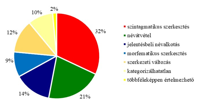 A víznevek keletkezéstörténeti folyamatainak megoszlását ábrázoló (statikus) képet árnyalja az egyes névalkotási módok belső arányainak időbeli változása. A morfematikus szerkesztéssel és a jelentésbeli névalkotással létrejött víznevek aránya nagyjából azonos mértékben van jelen a vizsgált három és fél évszázad alatt. Duplájára nőtt viszont a szintagmatikus szerkesztés útján létrehozott nevek aránya, s jelentősen növekedett a szerkezeti változás által érintett nevek részesedése is.