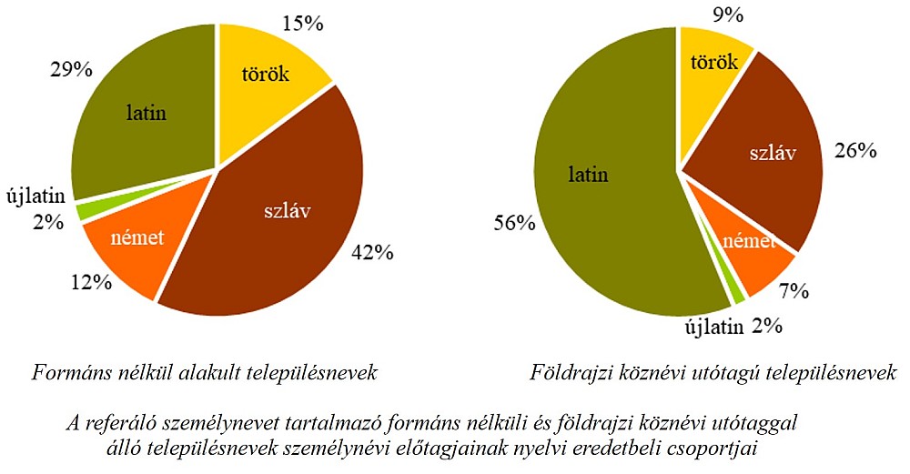 A személynévi összetevő nyelvi eredetbeli vizsgálata két névréteg dominanciájáról tanúskodik a településnevekben: