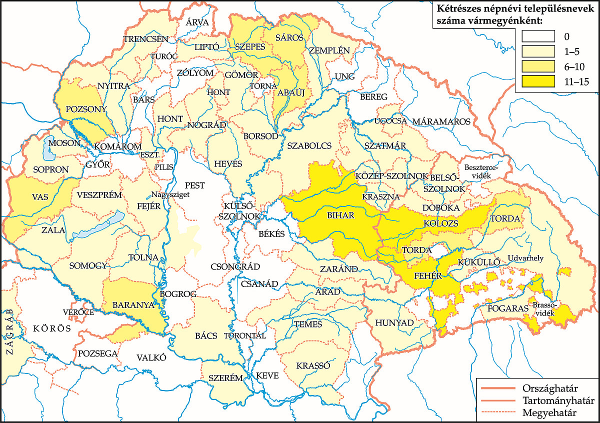 Ennek eredményeképpen megállapították és rögzítették az egyes települések hivatalos nevét. Ezek megváltoztatására az I. világháború után egyharmad részére csökkent ország területén csak viszonylag ritkán került sor.