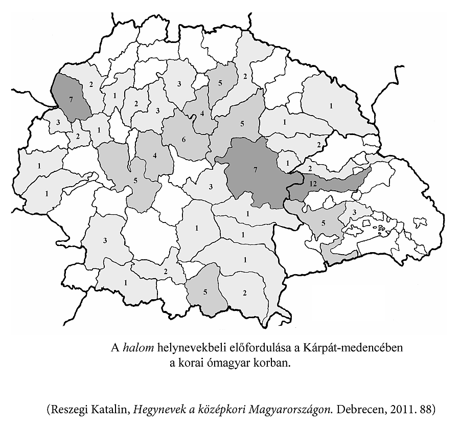 A kisebb kiemelkedések nevében a középkorban leggyakrabban a halom földrajzi köznév fordul elő. Ez a szó a szlávból került be a magyar nyelvbe, esetleg még a magyarság vándorlása során az óorosz nyelvből.